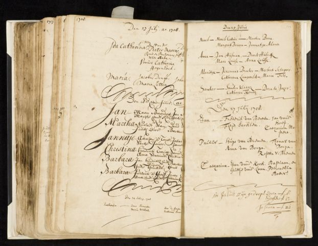 Ich suche diejenige Martha, die am 8. November 1742 Paulus Hageman geheiratet hat. Vom Alter her kämen alle infrage. Aber welche Martha ist die richtige? Wieso haben die Eltern überhaupt drei Töchter Martha genannt? Sind die ersten beiden früh gestorben? Oder war es damals in den Niederlanden nicht ungewöhnlich, seinen Töchtern denselben Namen zu geben? Ich kenne mich nicht so aus bei unseren Nachbarn. Sterbe- oder Begräbniseinträge für die Marthas gibt es nicht.