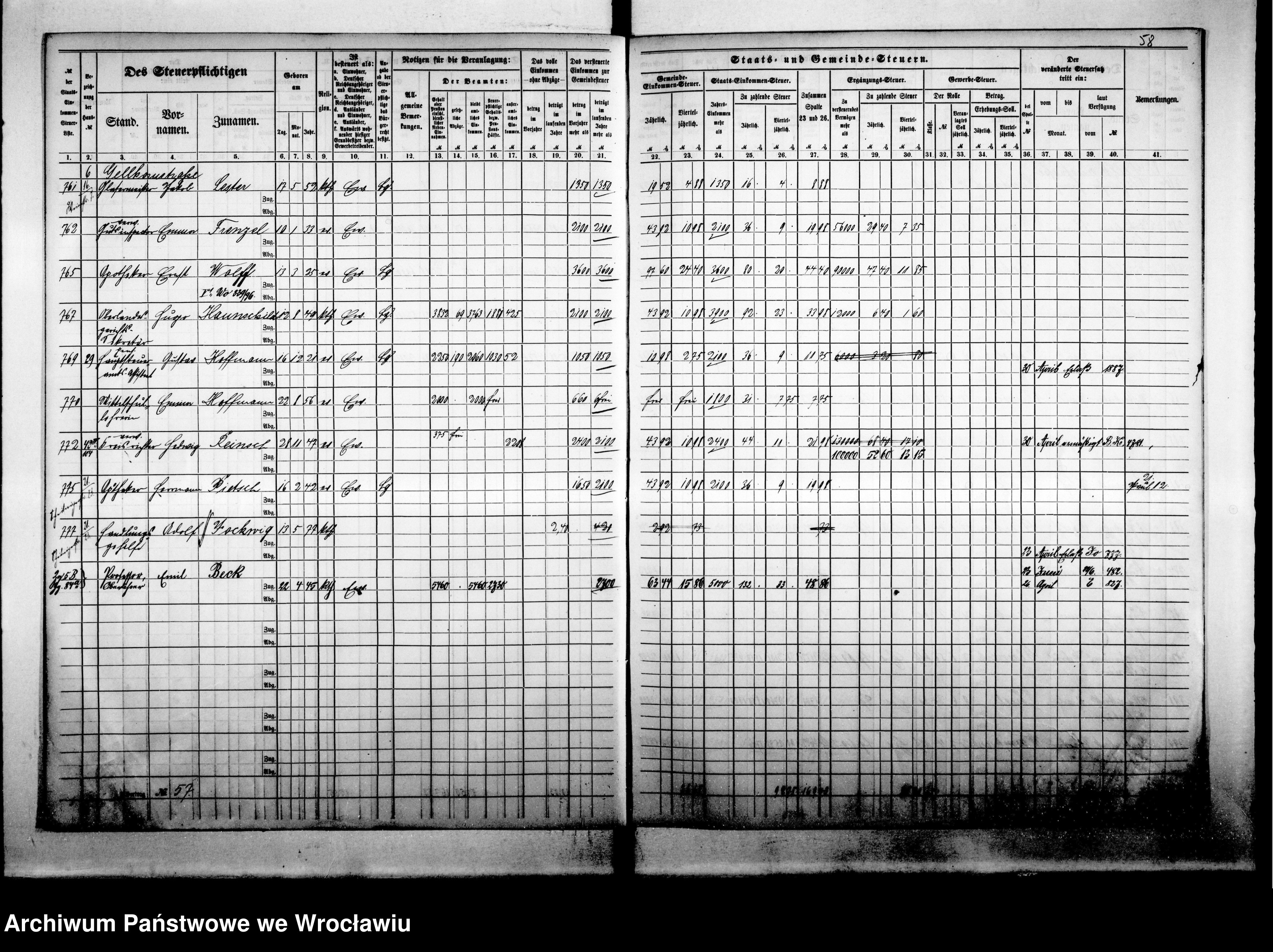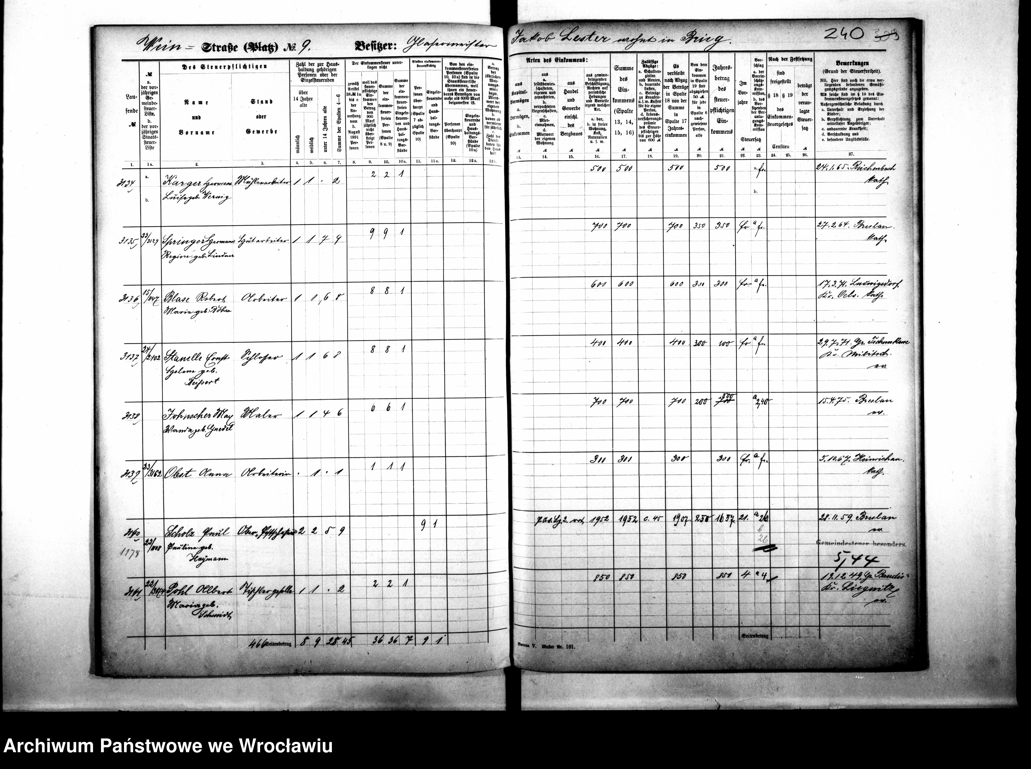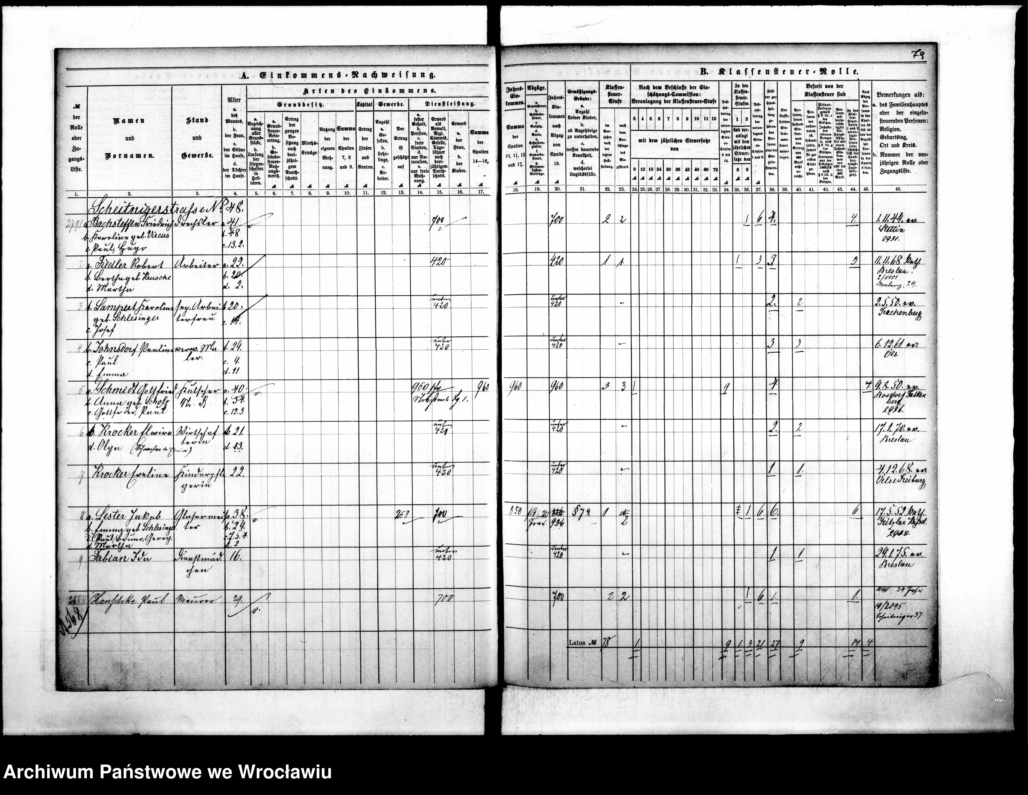 - Von welchen Jahrgängen gibt es noch Breslauer Steuerregister? Gibt es Melderegister usw.?