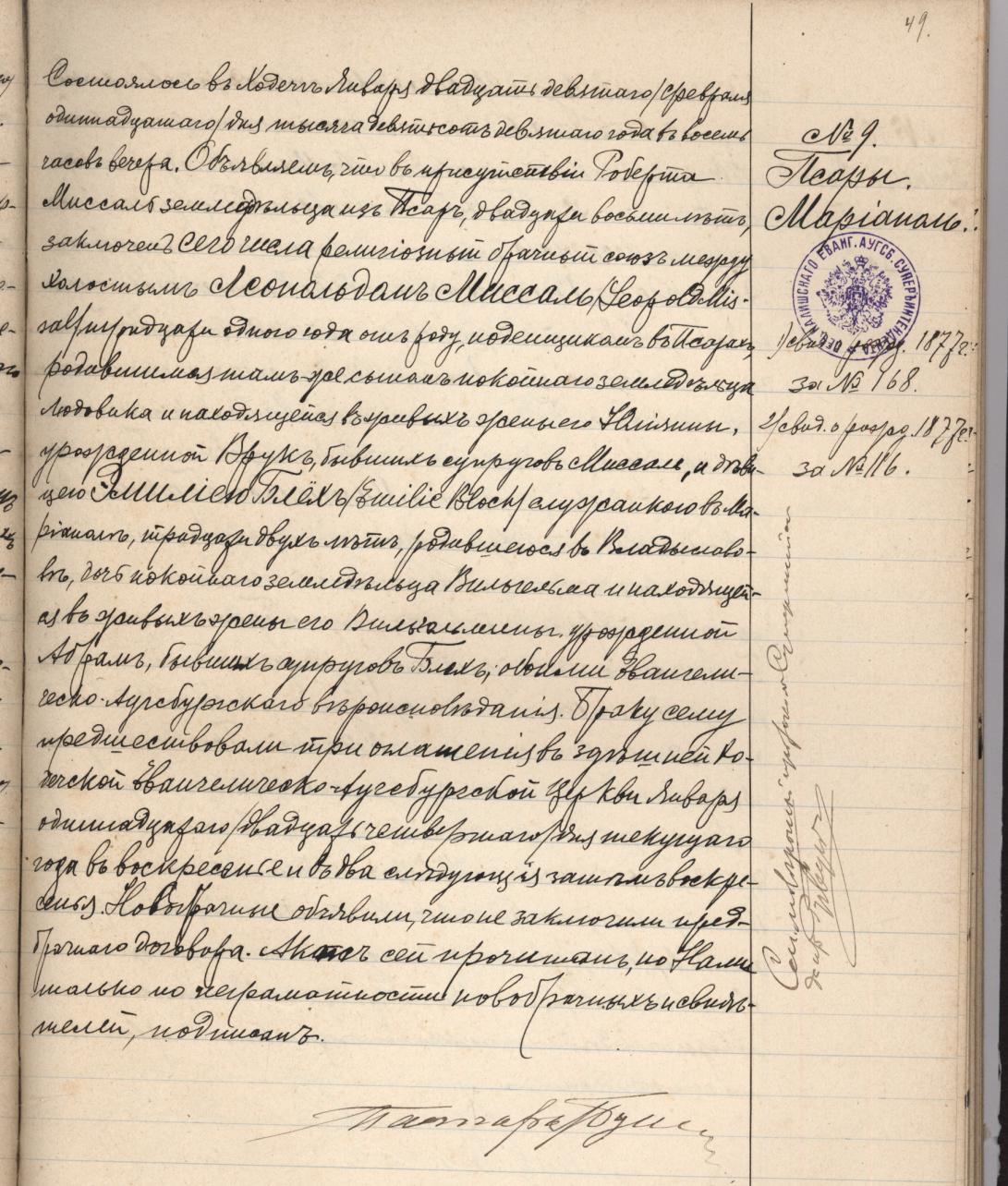 bei der Suche nach meinem Großvater Alexander Missal (*1918 in Wloclawek) habe ich durch das dortige Archiv Scans einiger Urkunden (auf Russisch, wenn ich das recht überblicke) bekommen. Eine habe ich mal angehängt.