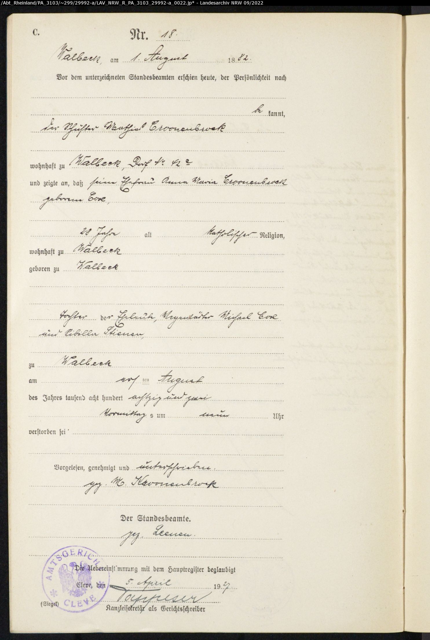 in dieser Sterbeurkunde aus Walbeck von 1882 werde ich aus dem Beruf des Vaters nicht schlau:
