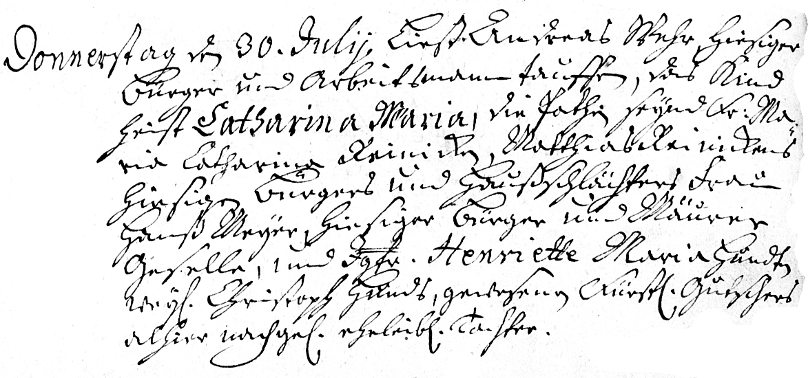 Donnerstag den 30. July Ließ Andreas Wehr, hiesiger