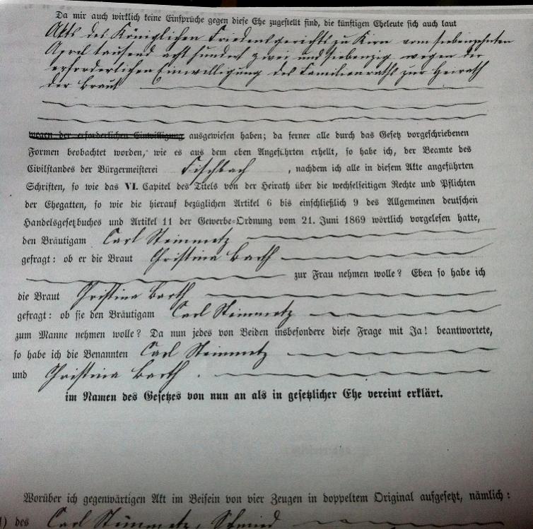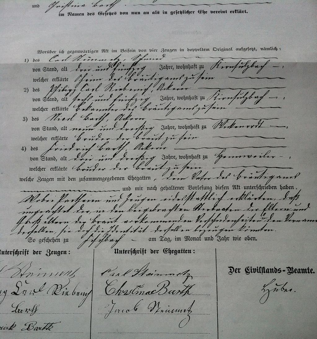 Quelle bzw. Art des Textes: Heiratsurkunde