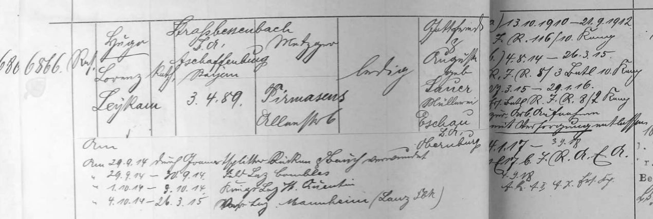 Ich suche die Kriegsstammrolle von Hugo Lorenz Leykam.