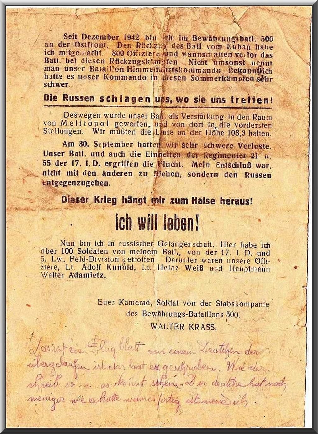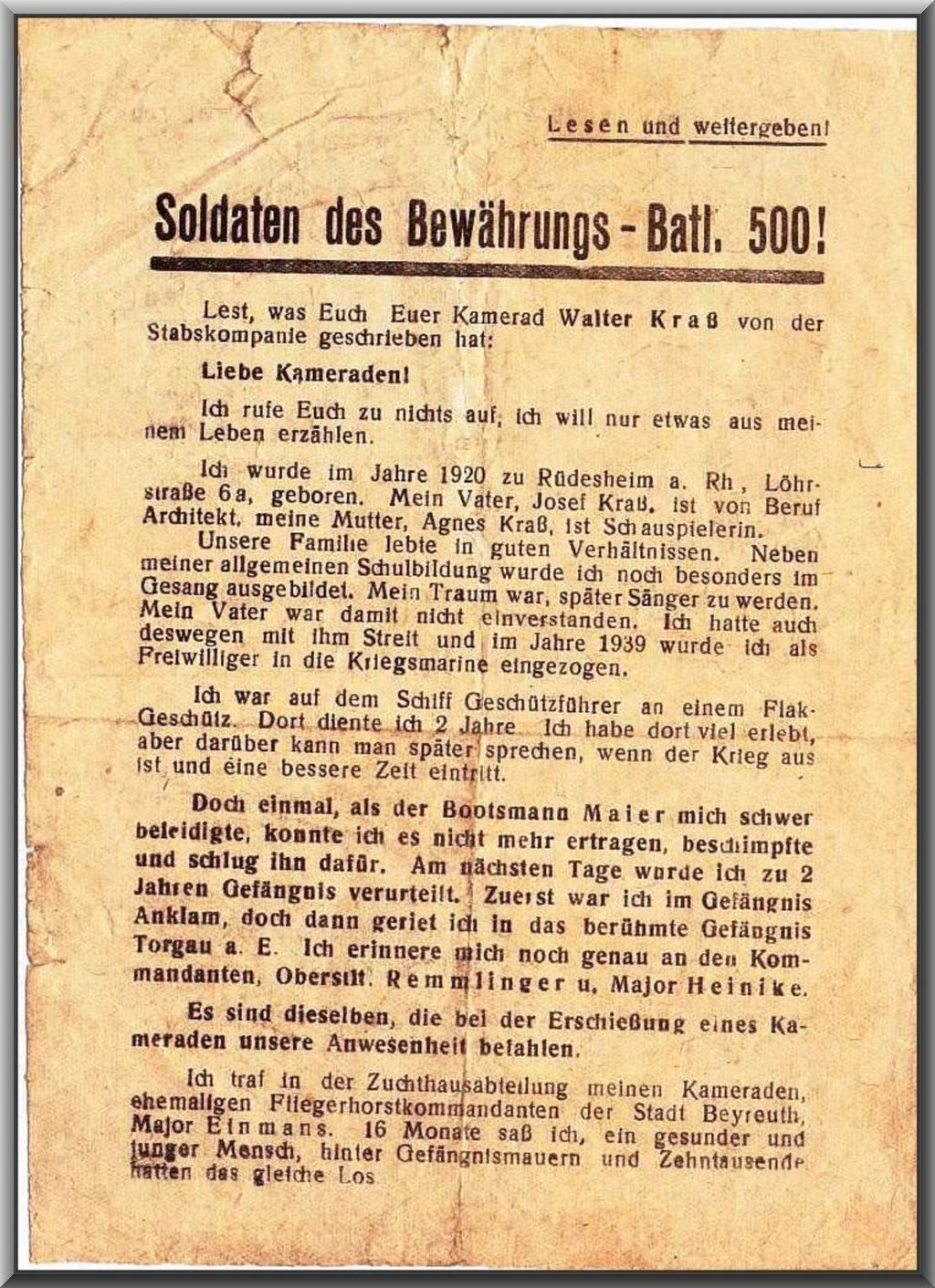 vielen Dank für das beeindruckende Dokument. Kann man heraus finden, ob Herr Kraß überlebt hat? Könnte vom Namen her sogar ein entfernter Verwandter von mir sein; ein Teil meiner Vorfahren hieß "Graß" aus Ingelheim, auf der anderen Rheinseite von Rüdesheim.