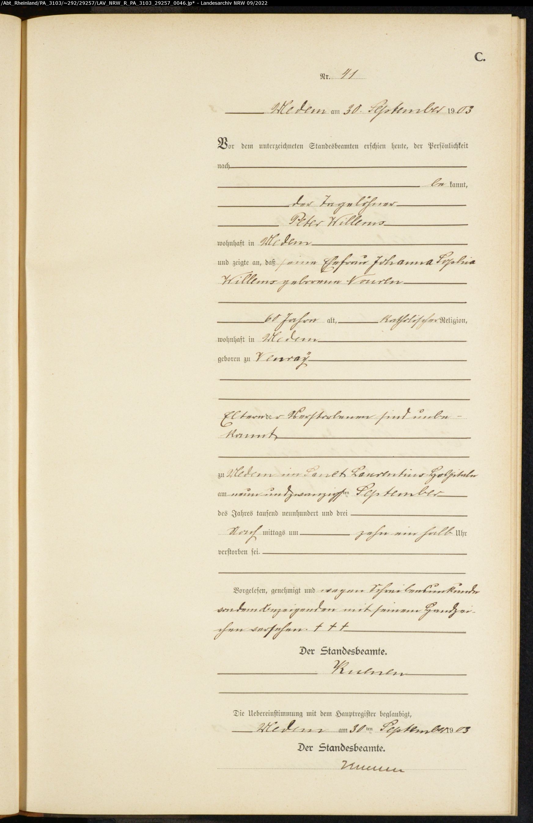 Leider habe ich in diesem Zusammenhang keine Informationen über Maria Willems gefunden. Also keine Geburt, Heirat oder Tod.