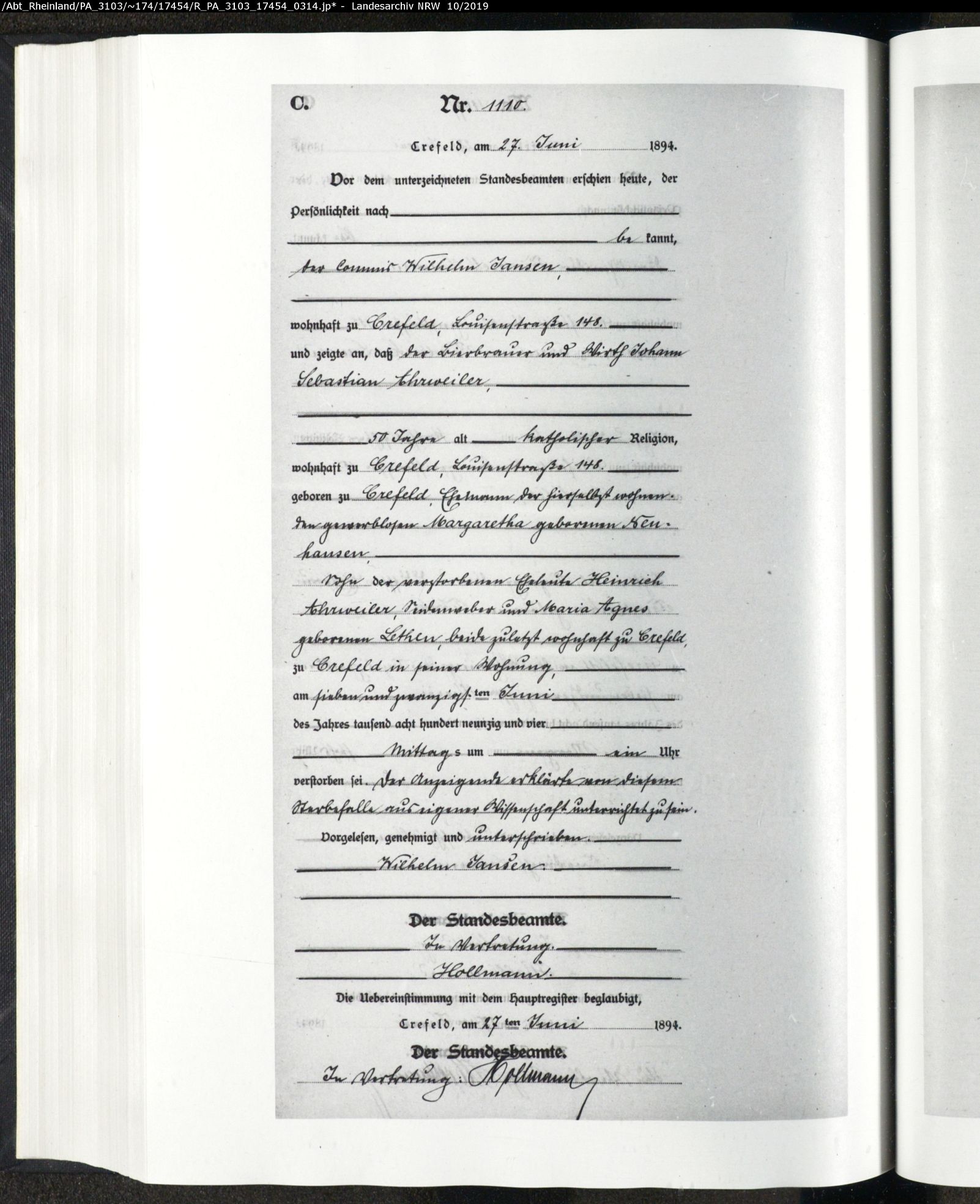 Margaretha Ahrweiler geborene Neuhausen starb am 20. Sep. 1895 in Krefeld mit 56 Jahren