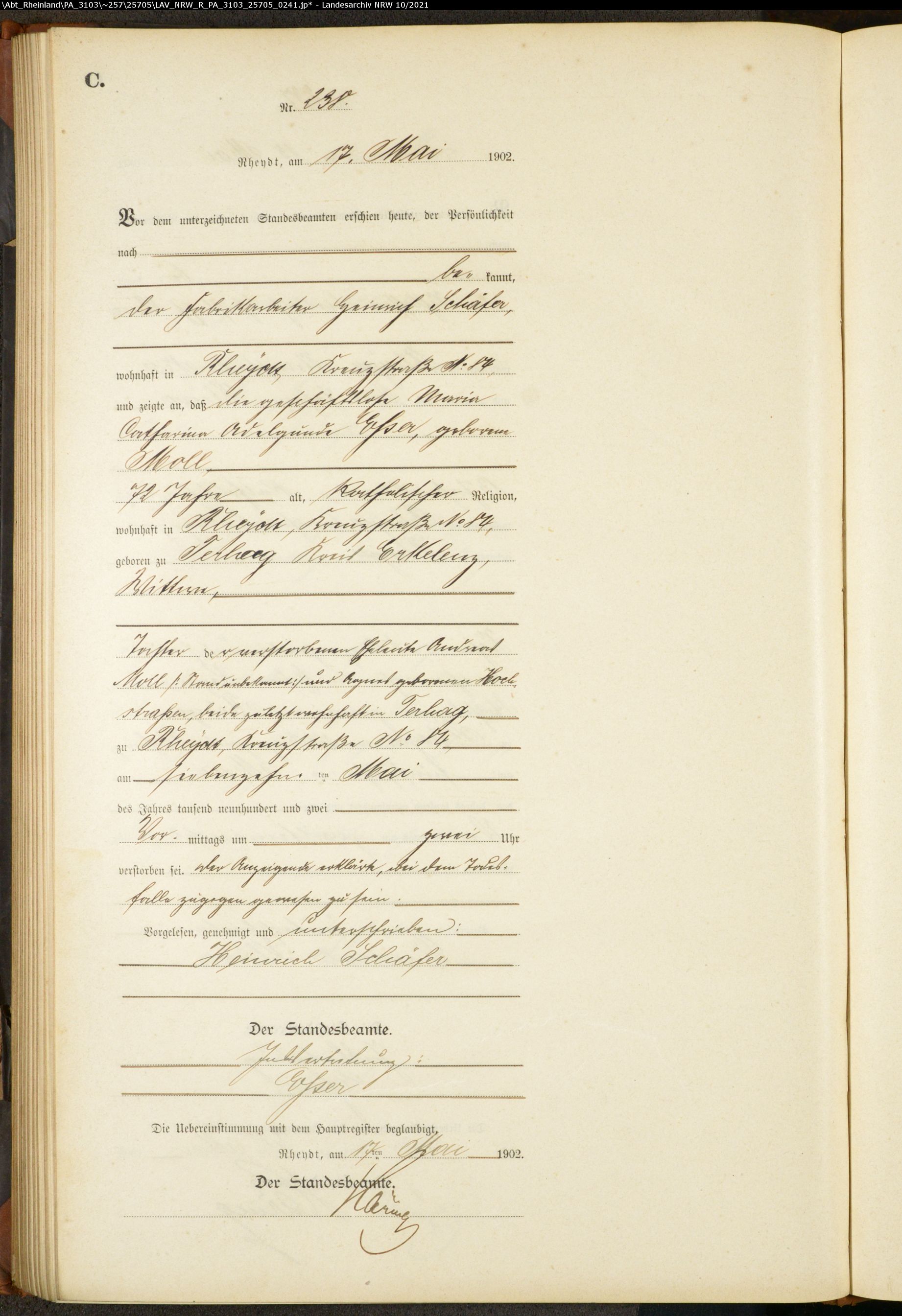 Bei Familysearch findet man eine Maria Catharina Moll *09 JAN 1830 Bedburdyck,Rheinland,Prussia