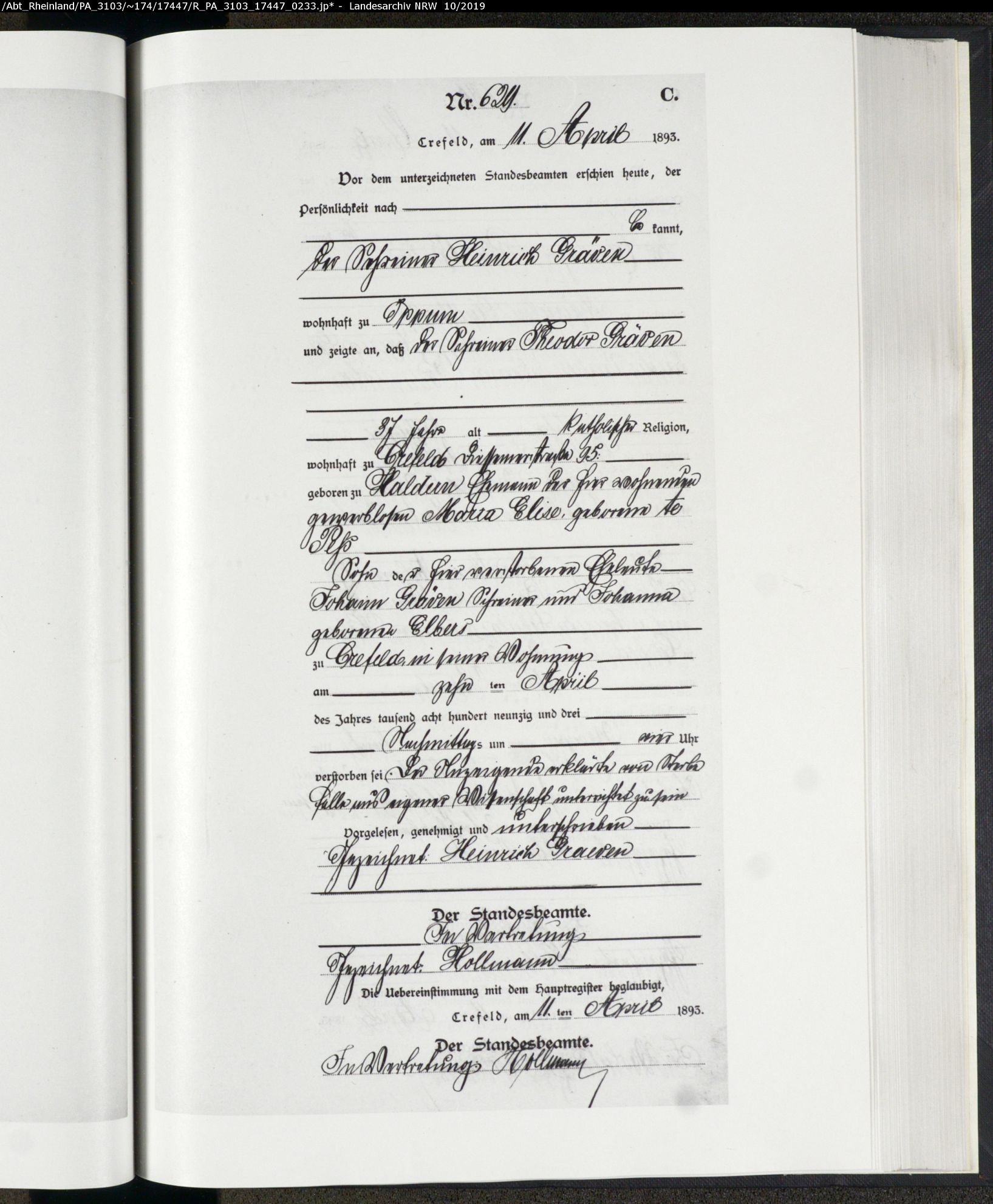 Verheiratet war er mit Maria Elise Tepess geb. 6.04.1856 in Krefeld.