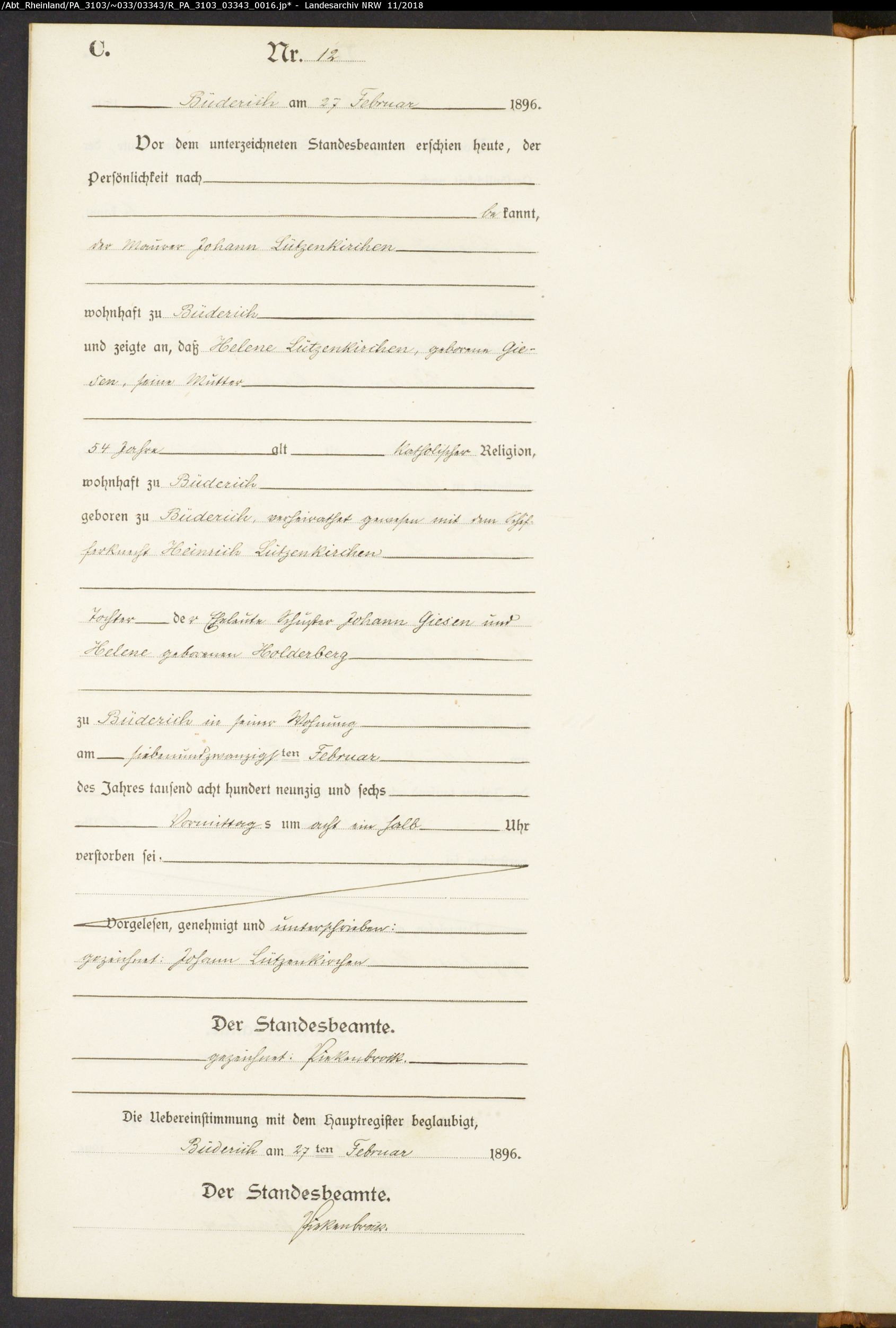 Eine Tochter von ihm war Maria Lützenkirchen *02.06.1875 in Büderich.