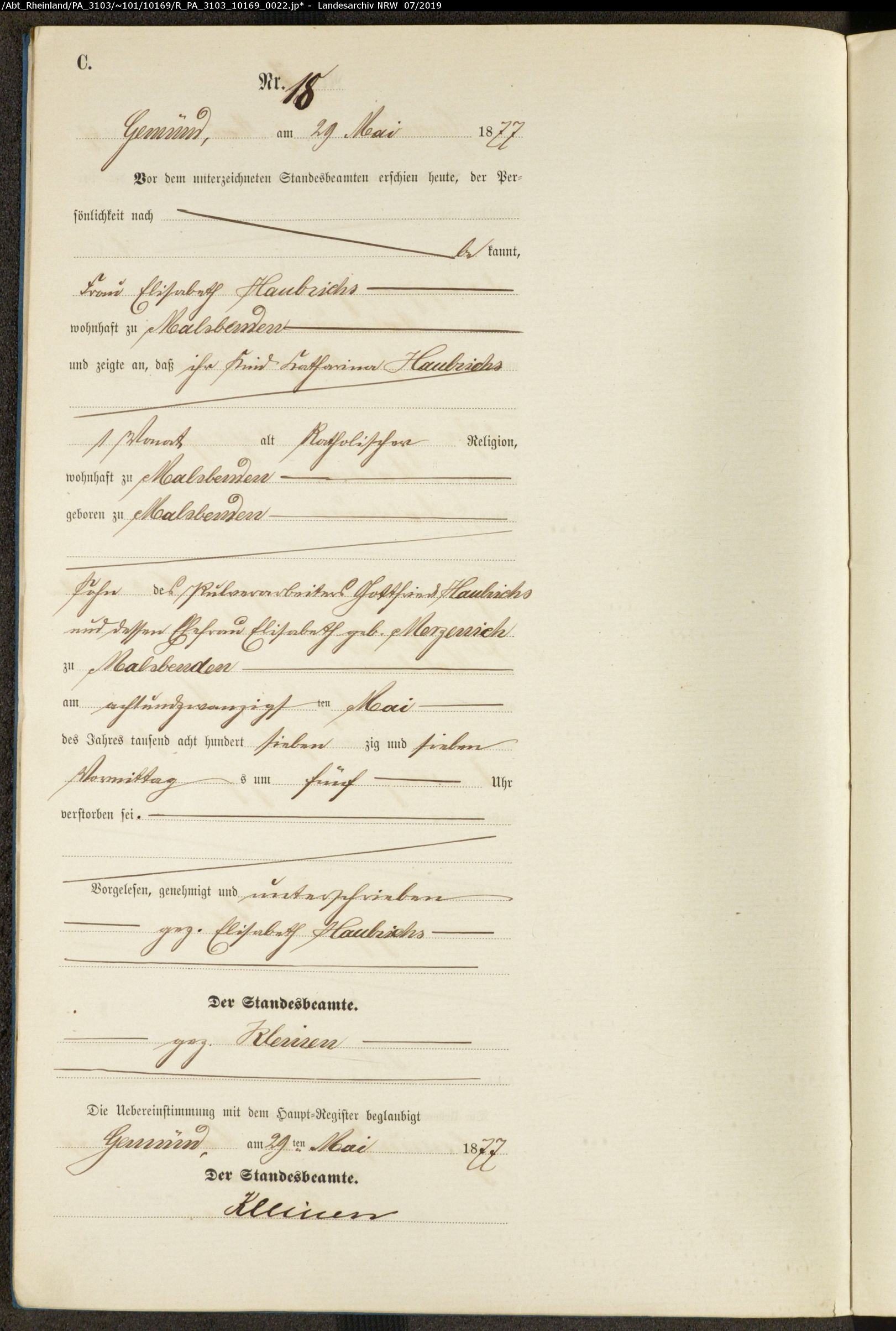 Zu Haubrichs such ich beginnend mit Gottfried Haubrichs dessen Sohn Franz Heinrich am 24.05.1878 in Strempt geboren ist.