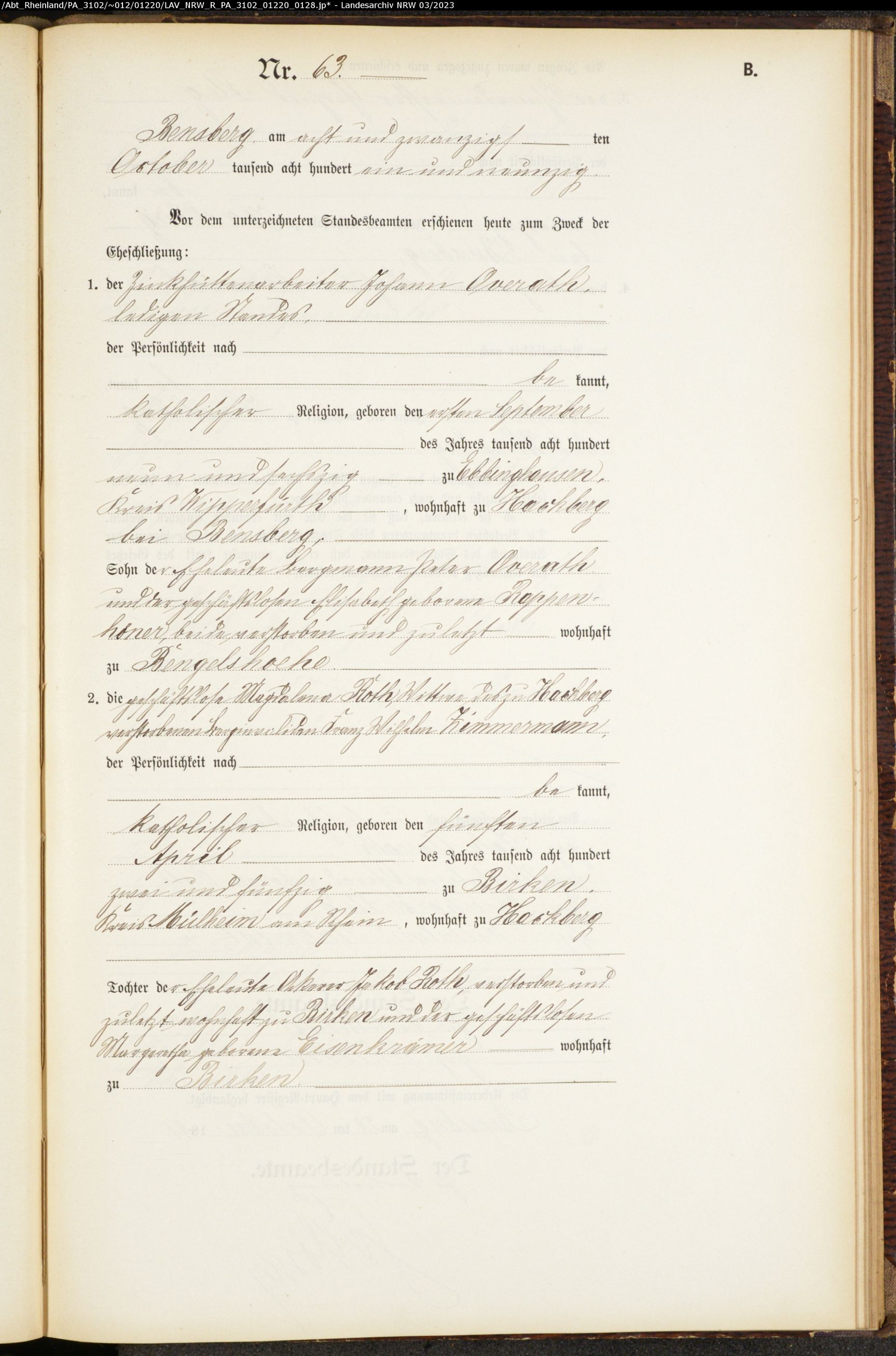 Ich suche Daten, Urkunden von Johann Overath, Großvater meiner Lebensgefährtin.