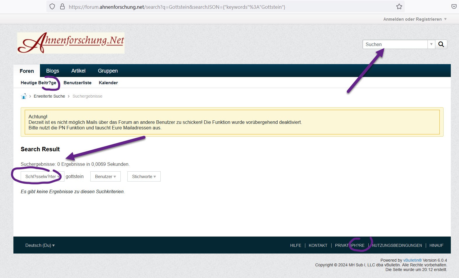 Die Suche funktioniert bei mir jedoch noch nicht (Bild im Anhang).