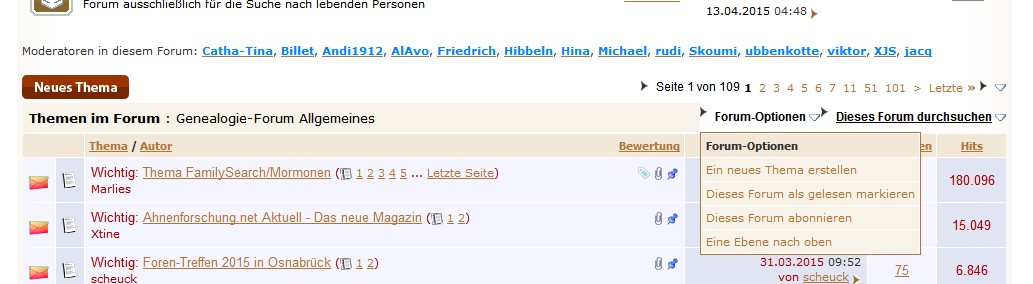 Wenn ich bisher in einem Forum auf "Forum-Optionen" geklickt habe, erschien