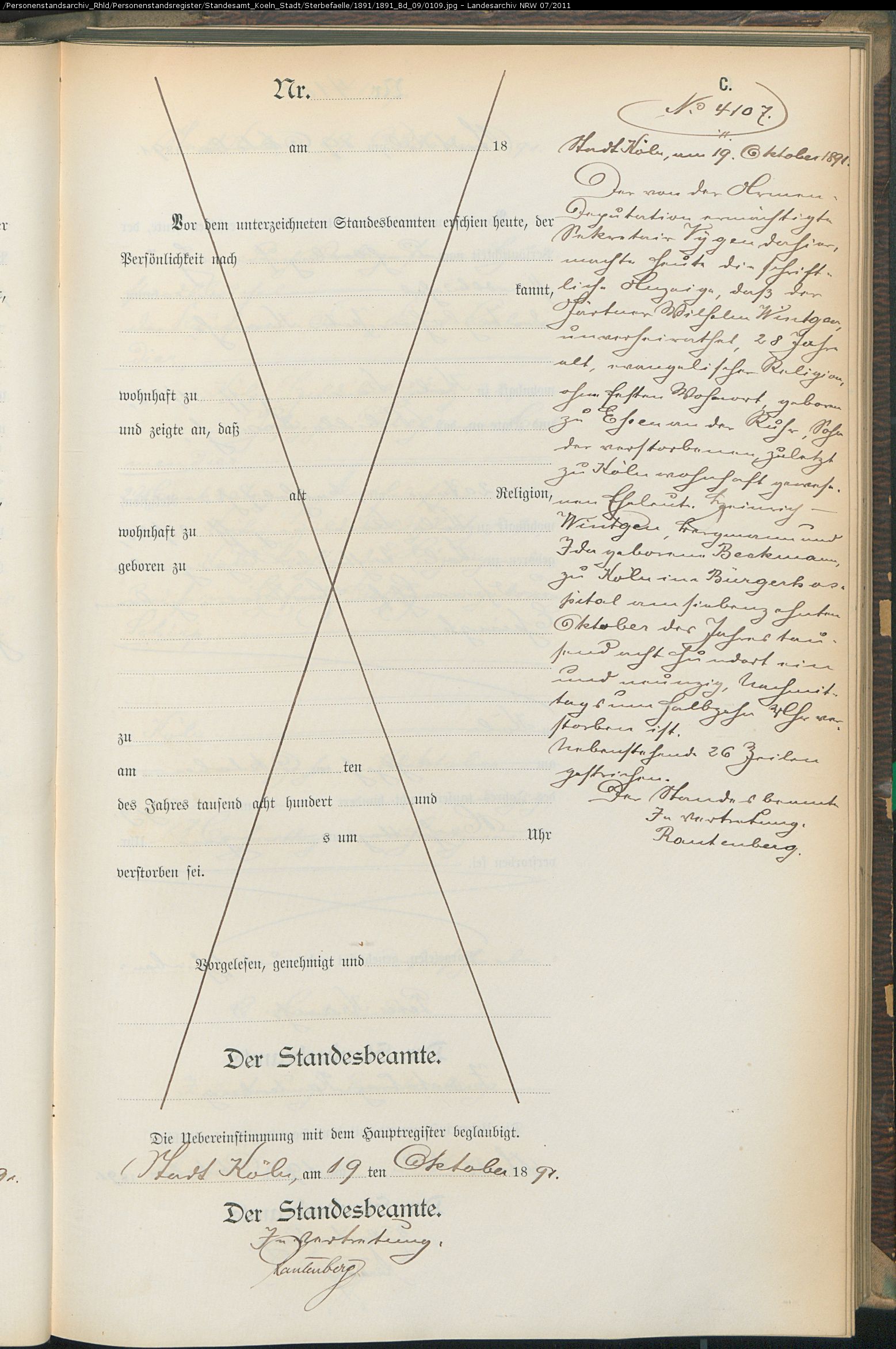Das Kann doch nur Standesamt Köln-Stadt sein. Doch die Online-Register reichen von: Band 5 von Nr. 2001 bis 2400, Band 6 von Nr. 2501 ff. Die Nummern 2401 bis 2500 fehlen. Da sollte der 28.7.1884 dabei sein.